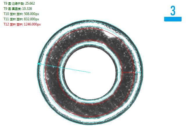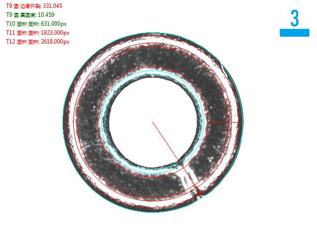 視覺檢測設備硬件結構包括自動上料機構、機器視覺檢測系統(tǒng)和自動剔除不良品機構。首先,自動上料機構可以將待檢測的磁圈自動送入機器視覺檢測系統(tǒng),實現(xiàn)一人看管多臺視覺檢測設備,提高生產效率。接著,機器視覺檢測系統(tǒng)使用高分辨率的工業(yè)相機對磁圈表面進行拍攝,然后通過圖像處理算法進行圖像分析和比對,判斷是否存在破損毛刺和裂紋。最后,自動剔除不良品的機構根據機器視覺檢測系統(tǒng)的判斷結果,將有問題的磁圈自動剔除出去,確保只有合格品進入下一個生產環(huán)節(jié)。如圖下磁圈視覺檢測方案。