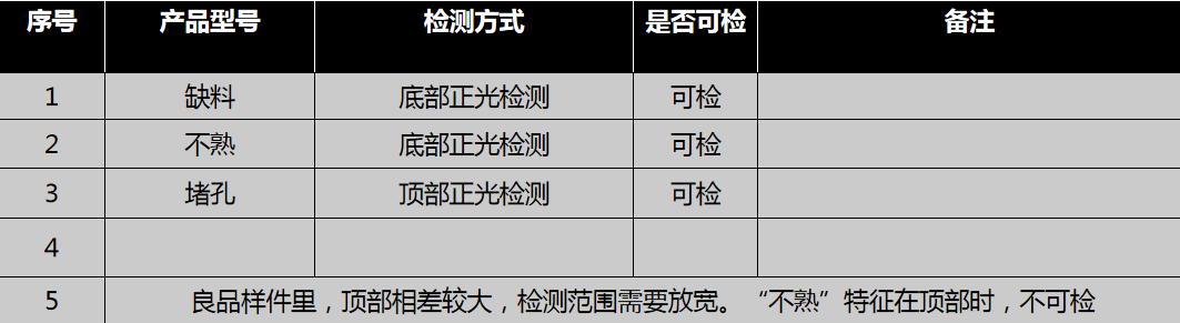 相機(jī)1:底部正光檢測不良品分析圖:NG        不良特征:不熟