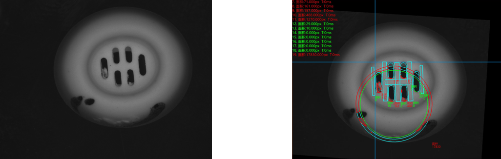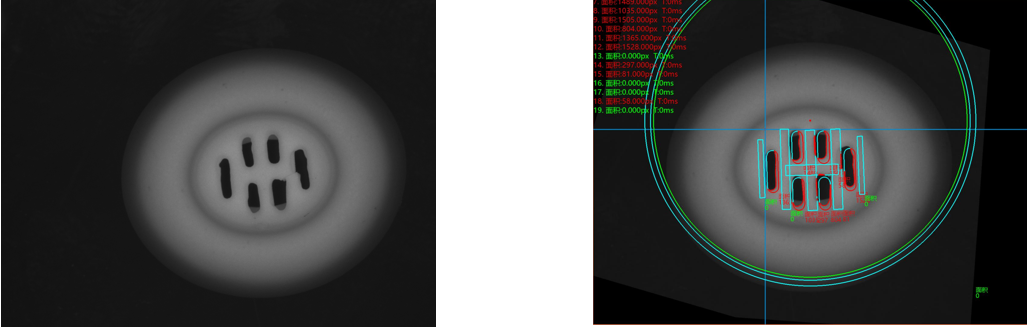 相機1、底部正光檢測不良品分析圖:NG           不良特征:孔位毛邊