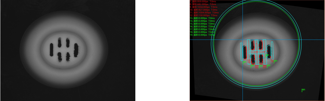 相機1、底部正光檢測不良品分析圖:NG           不良特征:孔位斷裂