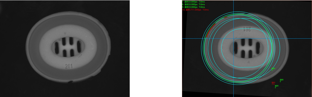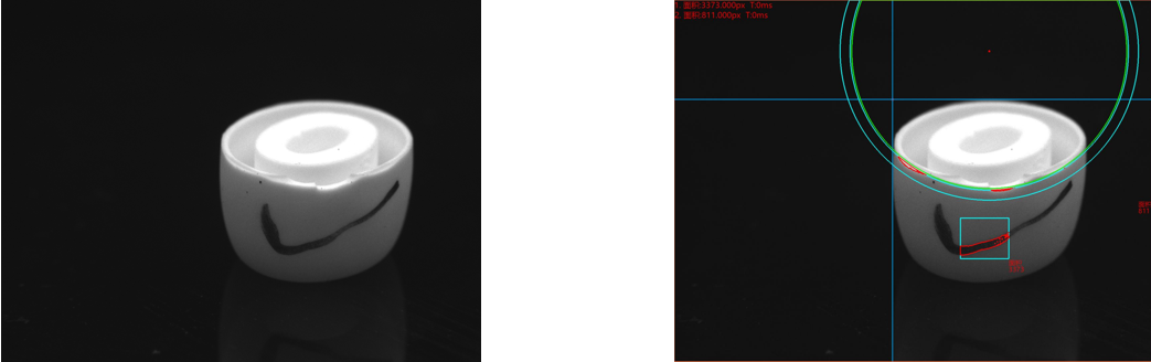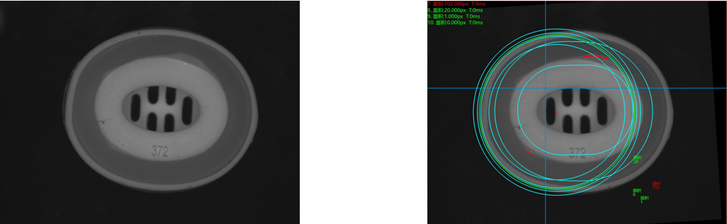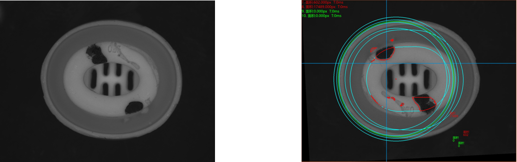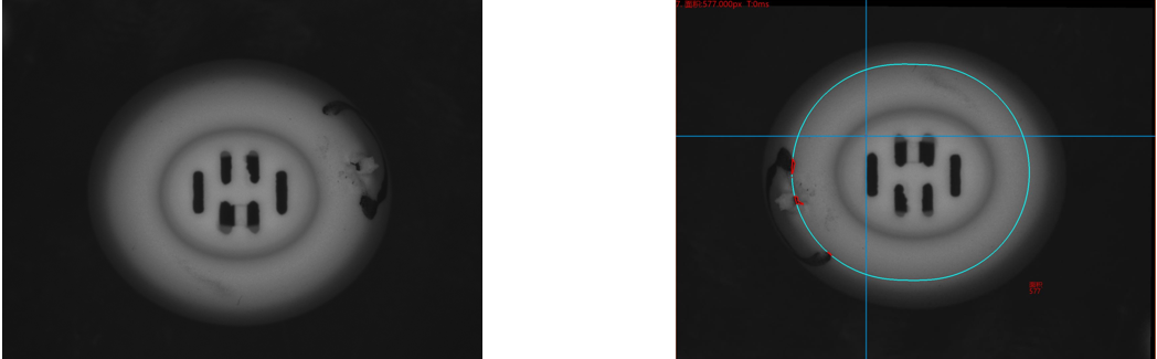 相機2、頂部正光檢測不良品分析圖:NG           不良特征:外圍毛邊